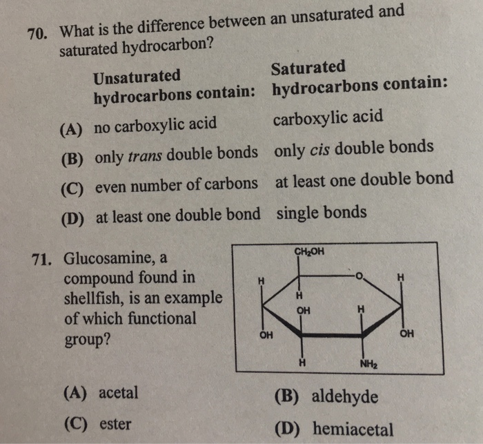 List Two Differences Between Saturated And Unsaturated Hydrocarbons